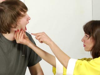 Genital exam and femdom trampling at a male physical